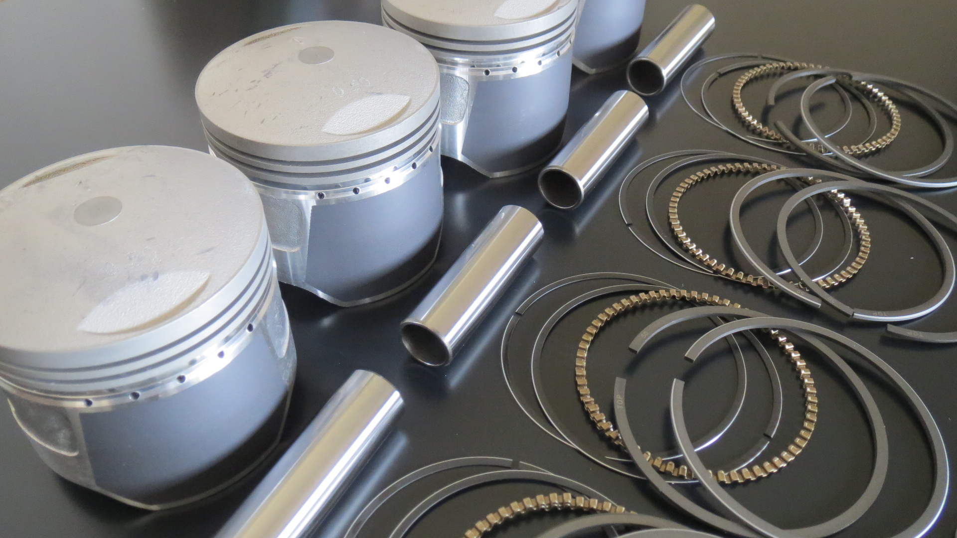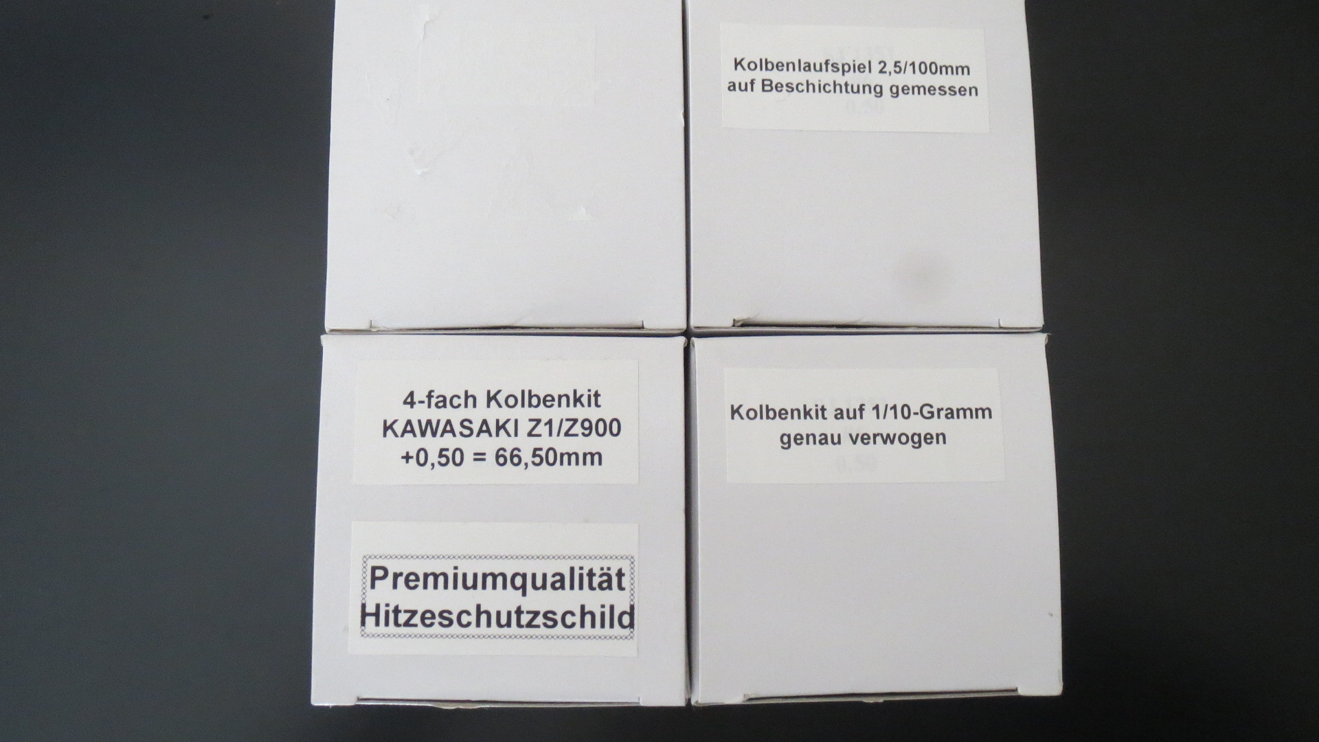 Sehr hochwertiger Kolbensatz bestehend aus 4 Kolben/Ringsätze/Kolbenbolzen und 8 Clips.