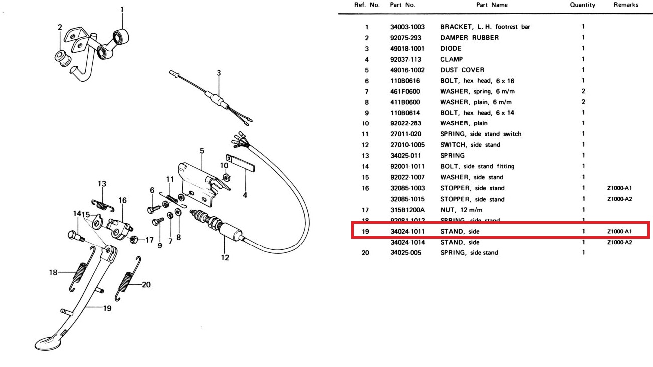 Mobile Preview: SEITENSTÄNDER "NOS" Z1000A1 (DEUTSCHE AUSFÜHRUNG) (ORIGINAL KAWASAKI)